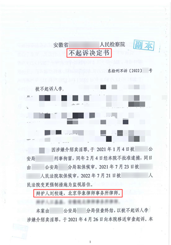 【刘校逢律师刑辩团队——成功案例之一:安徽阜阳李某涉嫌 介绍卖淫罪】