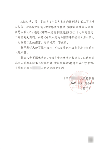 【侦查阶段,接受委托——不起诉决定书,“无罪”】