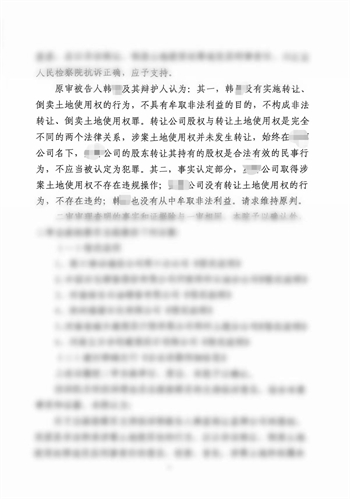 【刘校逢律师刑辩团队 成功案例之一:河南周口韩某某涉嫌 非法转让、倒卖土地使用权罪】